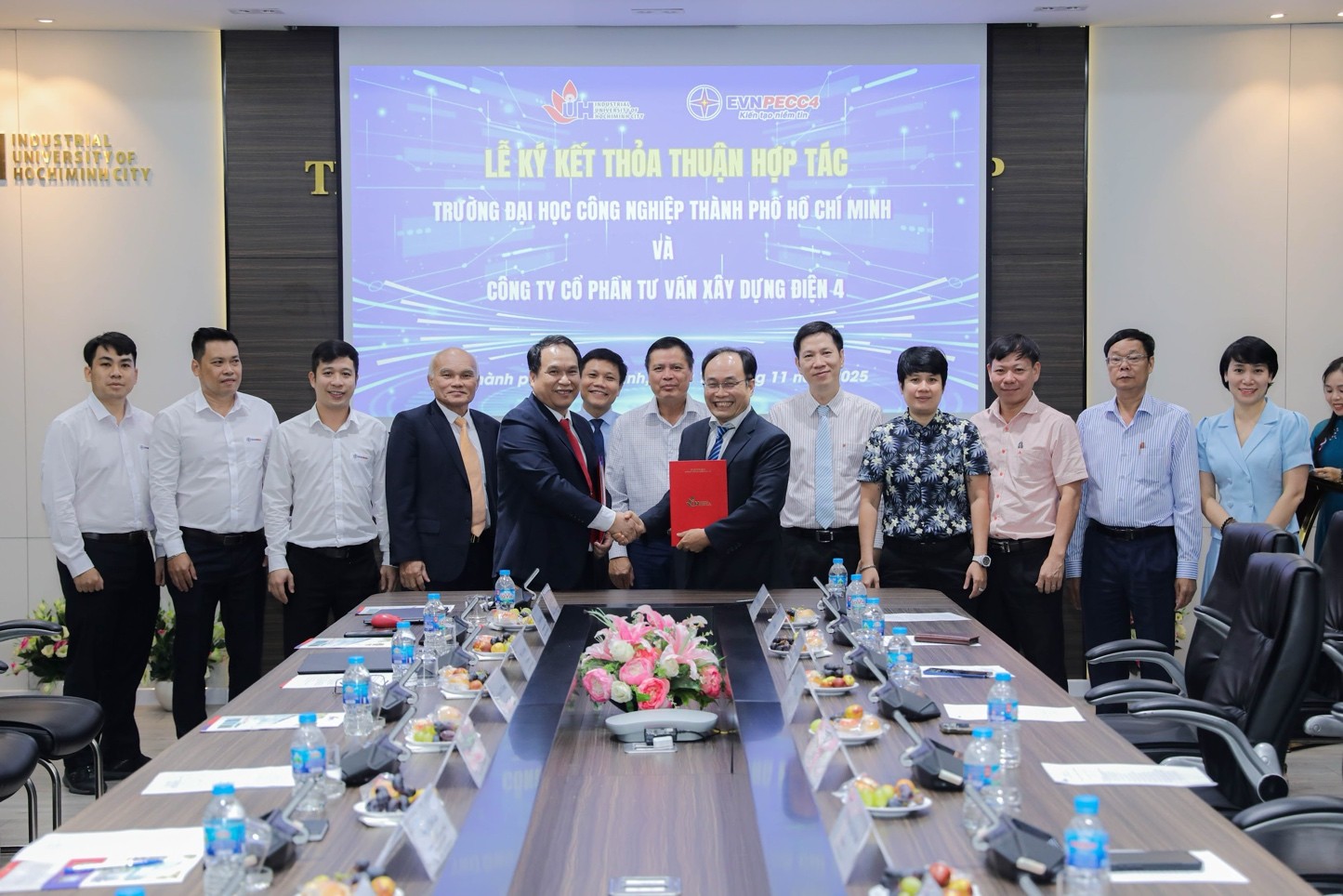 Ngày 14/11/2025, IUH và EVNPECC4 chính thức ký kết thỏa thuận hợp tác, mở ra nhiều cơ hội về đào tạo, nghiên cứu và trải nghiệm thực tế cho sinh viên, đặc biệt là trong lĩnh vực kỹ thuật điện.