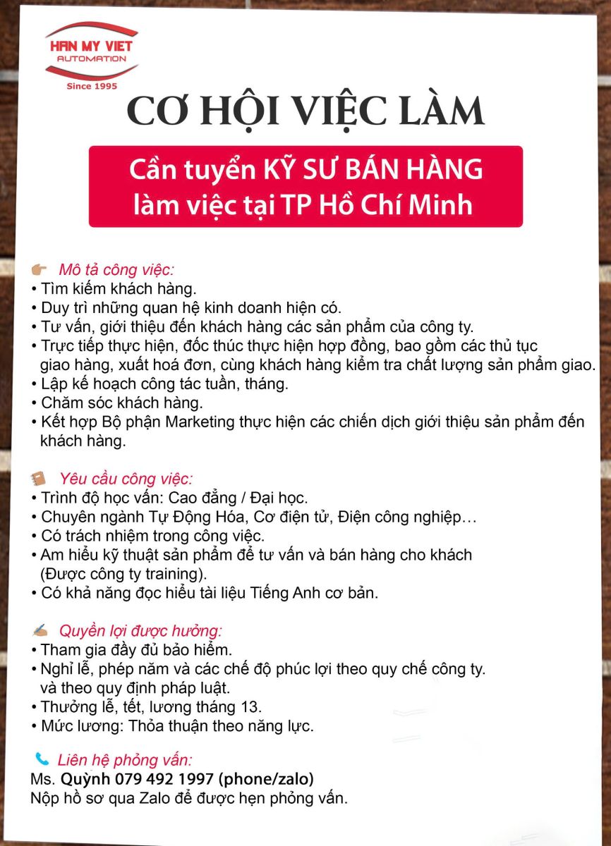Công Ty HAN MY VIET tuyển nhân sự bán hàng khu vực TP HCM