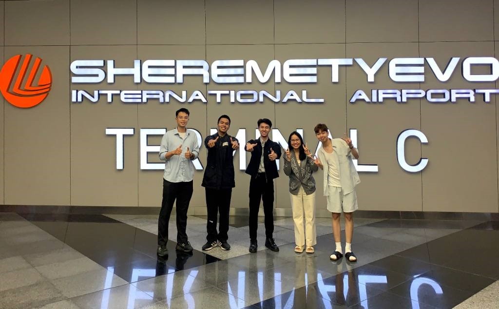 Nhóm sinh viên IUH gồm 5 bạn tại sân bay quốc tế ở Moscow