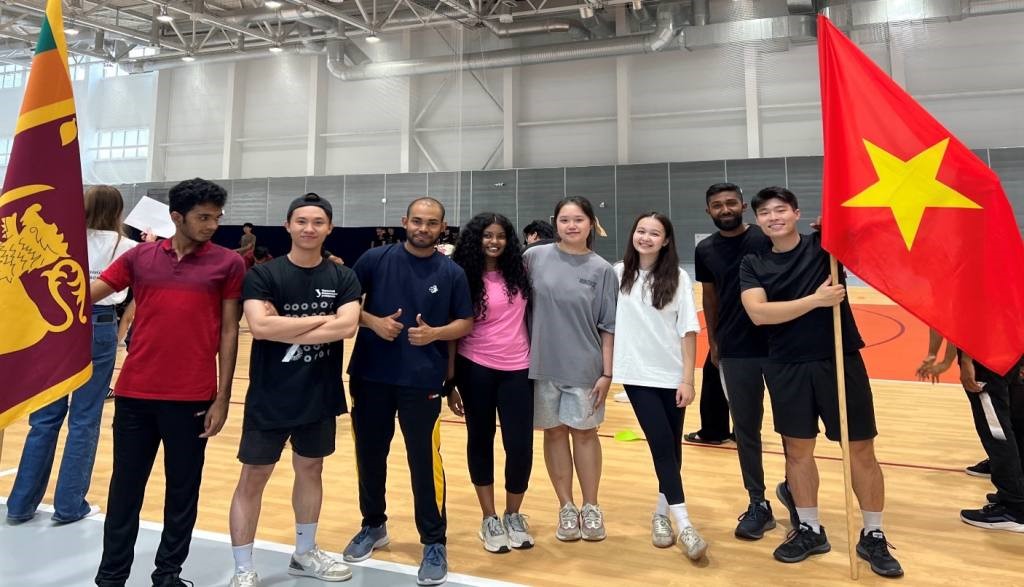 Ngày đầu tiên, chúng tôi tham gia lễ khai mạc chương trình Summer University (SU) cùng hơn 400 sinh viên đến từ nhiều quốc gia như Nga, Ấn Độ, Trung Quốc, Chile, Uzbekistan… Đoàn Việt Nam có 5 sinh viên từ IUH và 3 sinh viên đến từ Hà Nội. Khoảnh khắc được giương cao lá cờ đỏ sao vàng ngay tại sân trường UrFU khiến chúng tôi vô cùng tự hào.